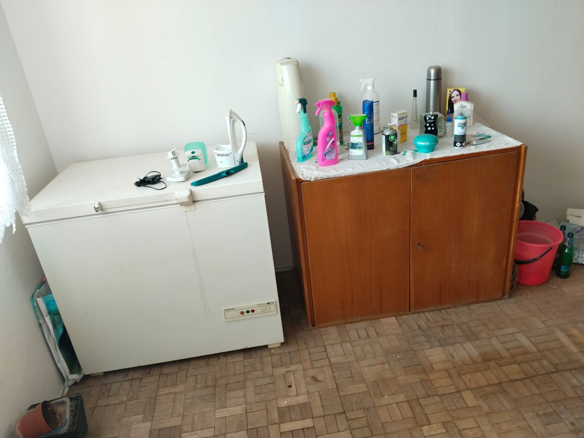 Hned za dveřmi se nacházela vstupní část bytu, která zároveň sloužila jako úložné místo pro různé věci z domácnosti. Vedle skříněk zde stála i lednice a další vybavení, které se postupně přesunulo z jiných místností, aby nepřekáželo v obytné části. Postupem času se tak z této části stal prostor, kam se odkládalo vše, co už nemělo své pevné místo jinde.